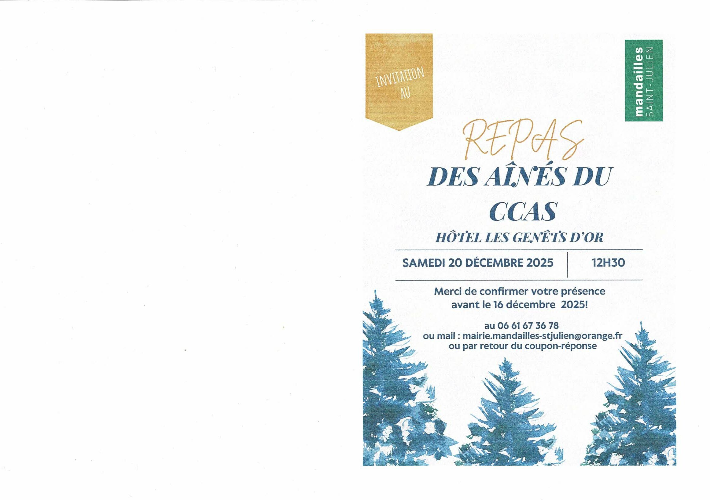 Repas des aînés du CCAS le 20 Décembre 2025 à 12h30 aux Genêts d’Or. 14 novembre 2025 by Mairie Mandailles - St Julien Leave a Comment